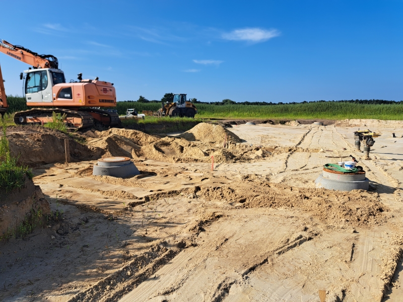 Ab August dieses Jahres wurde mit der Erschließung des zweiten Bauabschnitts begonnen. Und sie schreitet nach Plan voran: Der Schmutzwasserkanal ist verlegt, die Sonden für das „Kalte Nahwärmenetz“ sind gebohrt, die Versorgungsleitungen gezogen. Wenn die Maßnahmen so zielstrebig weiter umgesetzt werden können, wird der Endausbau dieses Abschnitts im März 2026 abgeschlossen sein.