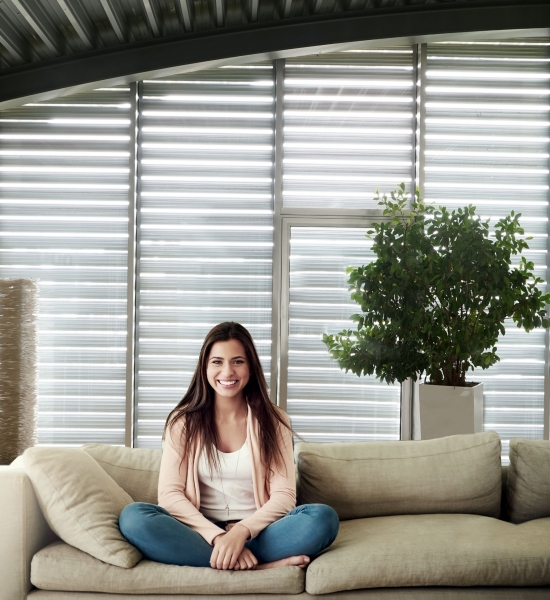 Das wunderbare Gefühl, mitten im Grünen zu sitzen, wird lediglich dadurch getrübt, dass durch die großzügigen Glasfassaden wertvolle Heizwärme entweichen kann. Das treibt wiederum die Energiekosten in die Höhe. Abhilfe schaffen hier Aluminium-Rollläden von Schanz. Sie haben eine dämmende Funktion, da sich zwischen Rollladenpanzer und Fensterglas eine isolierende Luftschicht bildet. Somit bleibt die Heizwärme im Wintergarten erhalten. Dabei muss niemand im Dunkeln sitzen: Speziell gelochte Select-Profil-Lichtschienen, die in individuell wählbaren Abständen die herkömmlichen Lamellen ersetzen, lassen ausreichend Helligkeit herein und sorgen für ein interessantes Licht- und Schattenspiel. Auch störende Reflexionen auf dem TV-Bildschirm oder Tablet gehören damit der Vergangenheit an.