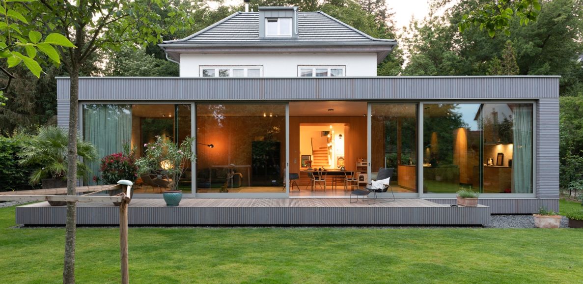 Ein Anbau aus Beton sorgt für mehr Wohnfläche in Bestandsgebäuden