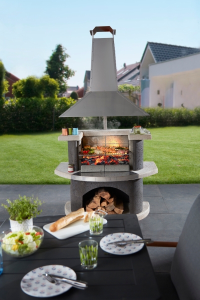 Mit ihrem zeitlosen, monolithischen Design setzen sie stilvolle Akzente im Außenbereich und machen die Frischluft-Saison zu einem Genuss für sämtliche Sinne: Wo das leise Knistern von Holz mit faszinierendem Flammentanz, aromatischen Geschmackswelten und wohliger Wärme zusammentrifft, entsteht ein Lieblingsort, der schnell zum Mittelpunkt des Außenbereichs avanciert. Da die Grillkamine sowohl mit Holz als auch mit Holzkohle befeuert werden können, zeigen sie sich außerdem besonders flexibel – je nachdem, ob das typische „Look & Feel“ einer nostalgischen Lagerfeuer-Atmosphäre gewünscht ist oder die unkomplizierte, schnelle und präzise Zubereitung von Grillgut im Fokus steht. Dank der hohen Hitzespeicherfähigkeit und gleichmäßigen Temperaturverteilung der Betonkamine gelingen saftige Steaks, buntes Gemüse und süße Nachspeisen wie Schokobananen oder Erdbeer-Marshmallow-Spieße mühelos.
