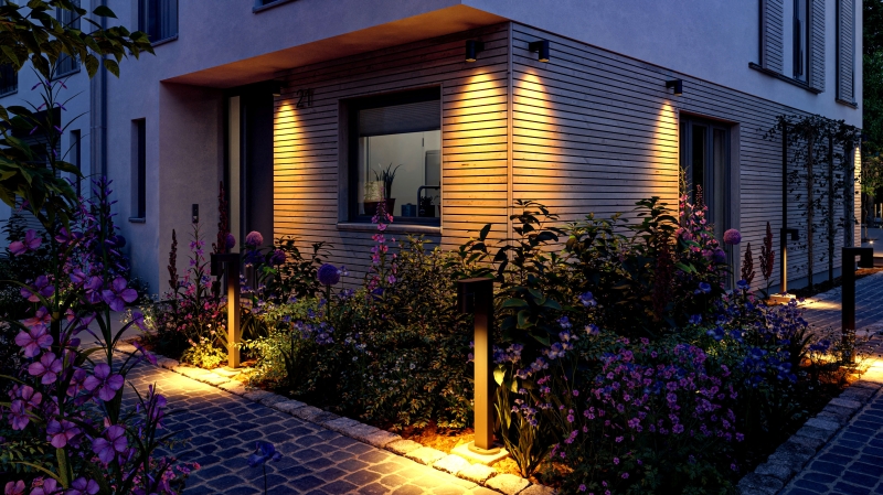 Strahler, die Sträucher und Bäume in Szene setzen, LED-Stripes für Bodenkanten oder Beete, Lichterketten für Geländer oder Bäume oder Einbauleuchten für den Boden: Erst verschiedene Lichtquellen schaffen gemeinsam ein stimmungsvolles Gesamtbild. Dabei soll die Installation möglichst einfach und schnell vonstatten gehen. Diese Anforderungen erfüllen flexible Gartenlichtsysteme wie Plug&Shine von Paulmann. Lediglich ein Stromauslass ist notwendig, um Leuchten im gesamten Outdoor-Bereich zu platzieren. Nach der Verlegung von Kabel und dem Anschluss des Trafos kann die Lichtinszenierung bereits beginnen – auf Wunsch auch in Verbindung mit einer smarten Steuerung. Eine passende Ergänzung dazu stellen Solarleuchten dar. Die mobile Tischleuchte Soala etwa ist nachhaltig gleich in mehrfacher Hinsicht: Das hochwertige Material besteht zu über 60 Prozent aus recyceltem Kunststoff, zudem sorgt das integrierte Solarpanel für einen effizienten und ressourcenschonenden Energieverbrauch. Unter www.paulmann.de etwa finden sich mehr Details und nützliche Tipps für eine maßgeschneiderte Beleuchtung des eigenen Gartens.