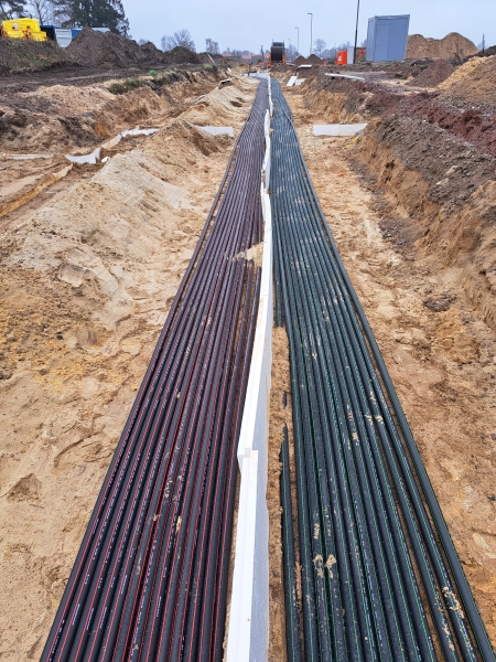 Ab August dieses Jahres wurde mit der Erschließung des zweiten Bauabschnitts begonnen. Und sie schreitet nach Plan voran: Der Schmutzwasserkanal ist verlegt, die Sonden für das „Kalte Nahwärmenetz“ sind gebohrt, die Versorgungsleitungen gezogen. Wenn die Maßnahmen so zielstrebig weiter umgesetzt werden können, wird der Endausbau dieses Abschnitts im März 2026 abgeschlossen sein.
